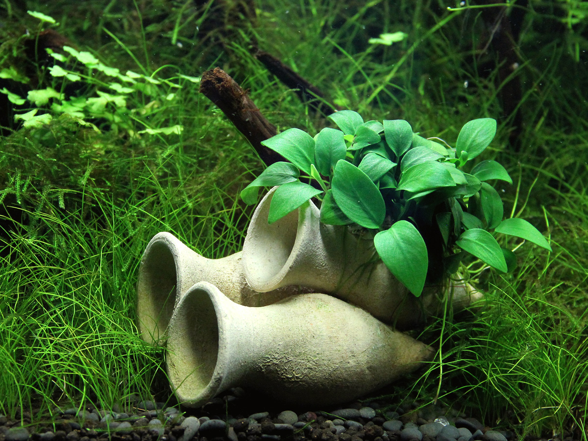 Die mit der Aquarienpflanze Bonsai-Zwergspeerblatt bepflanzte Aquarien - Deko Garnelen-Amphore (10x5x7 cm) jetzt kaufen und sorgfältig verpackt per Paket nach Hause geliefert bekommen.